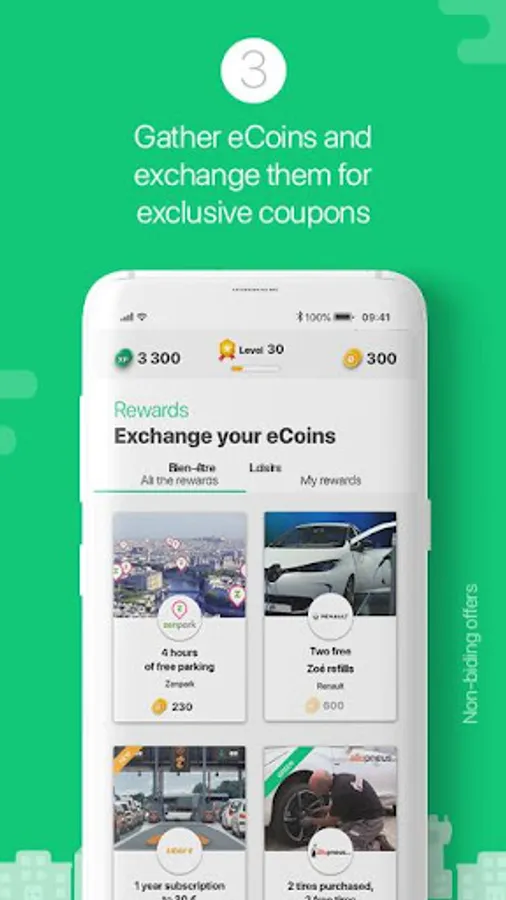 - Earn XP and eCoins. Redeem them for coupons negotiated for you in "automobile", "well-being" and "leisure" special offers,