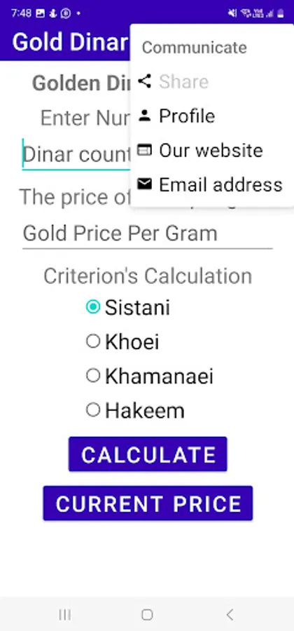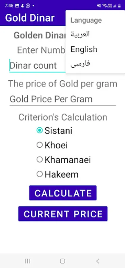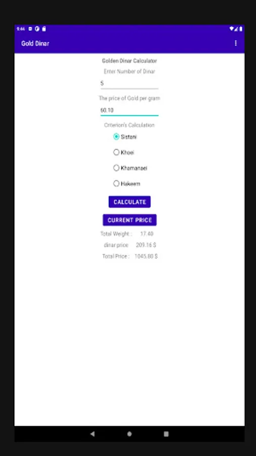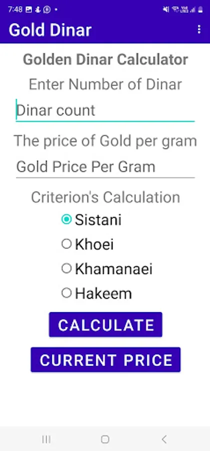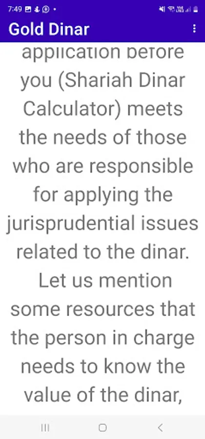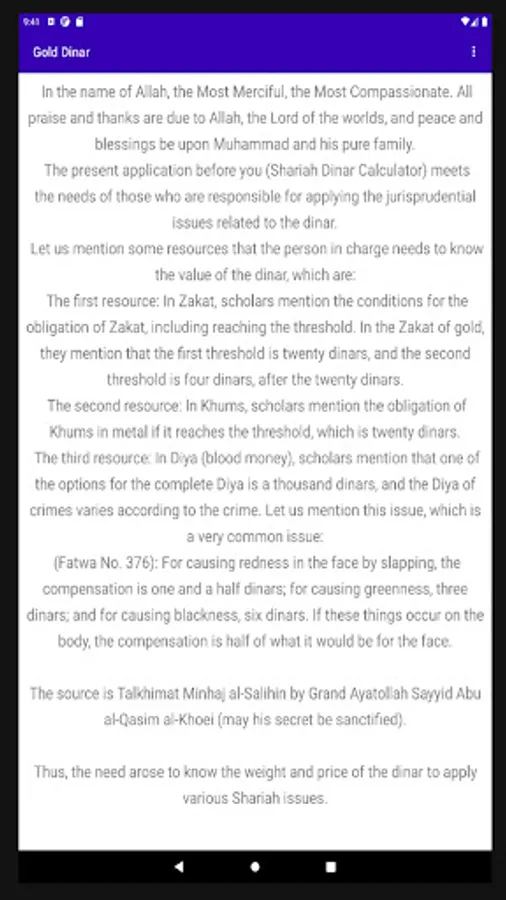 The present application before you (Shariah Dinar Calculator) meets the needs of those who are responsible for applying the jurisprudential issues related to the dinar.