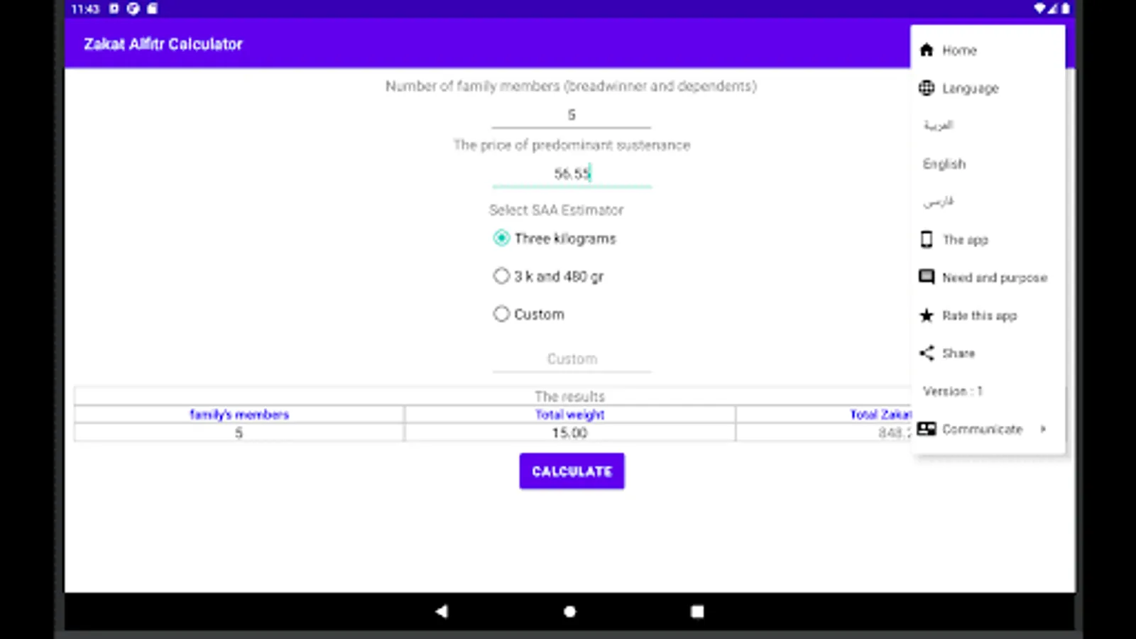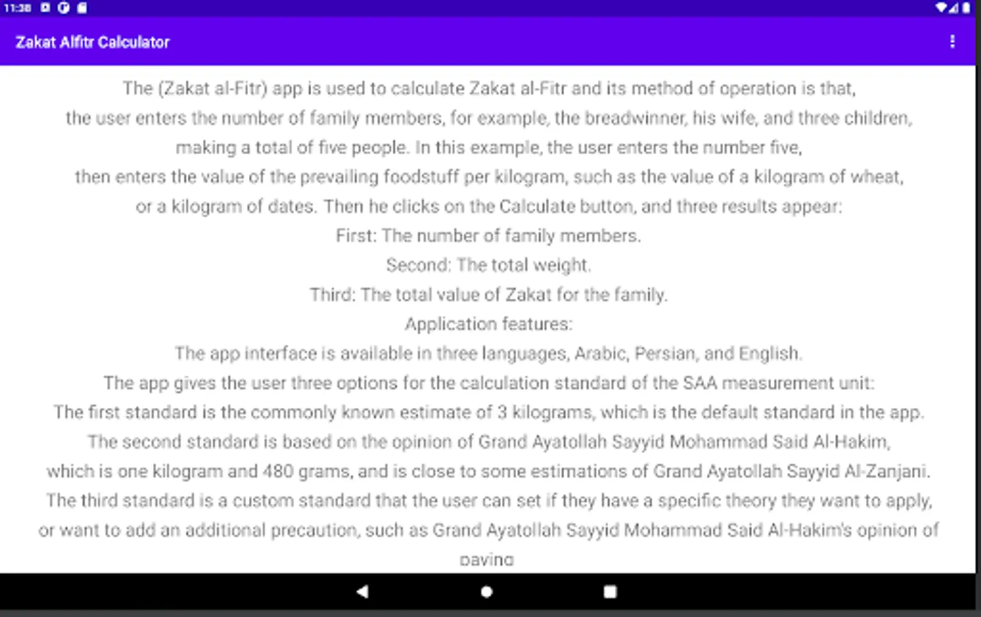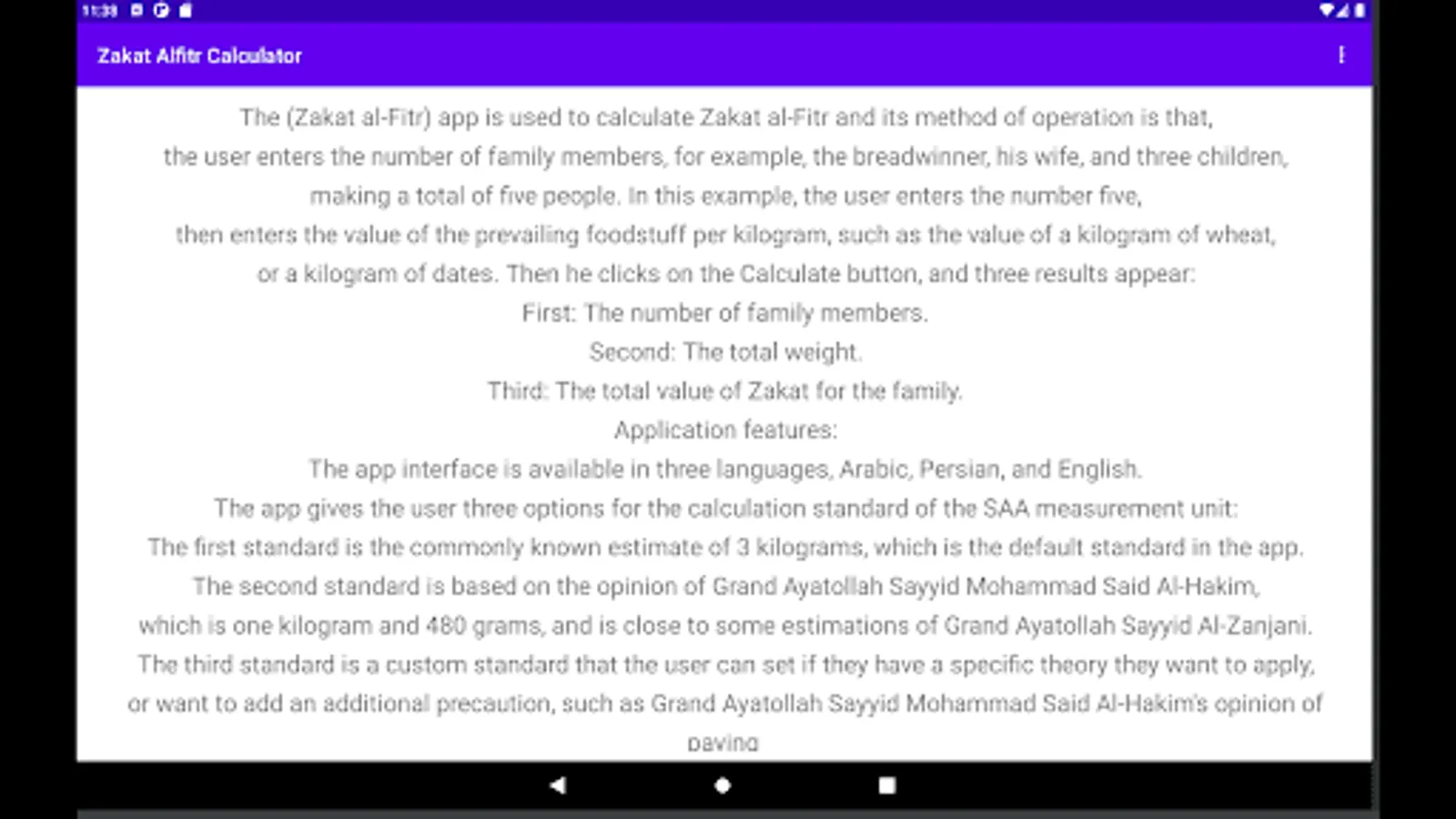The (Zakat Alfitr Calculator) app is used to calculate Zakat al-Fitr and its method of operation is that,