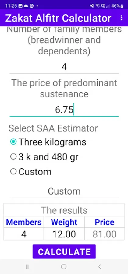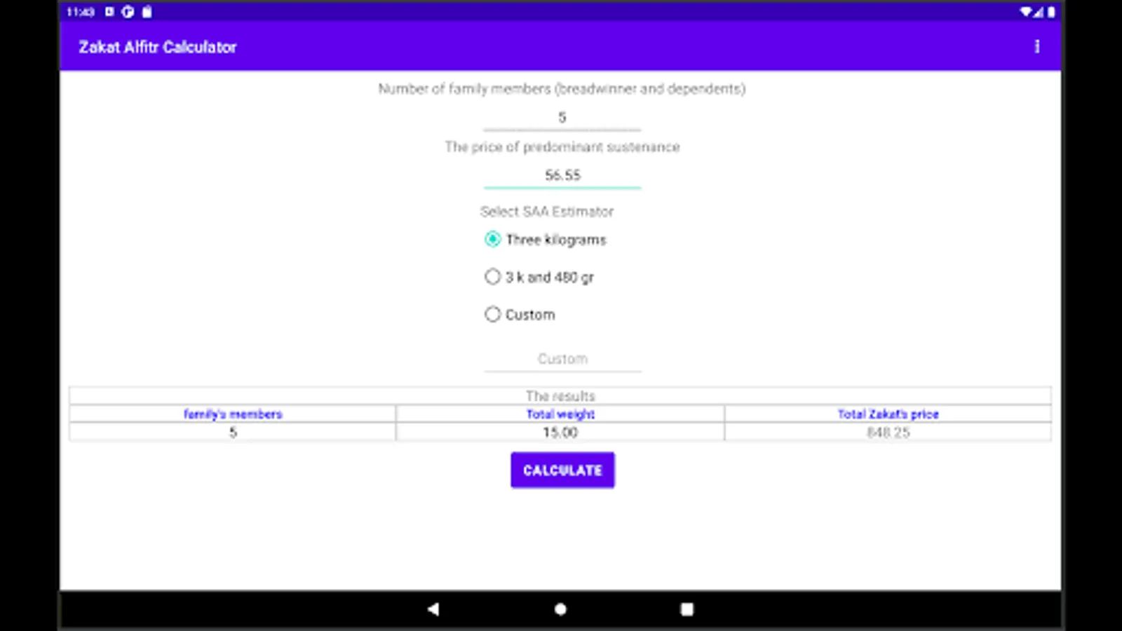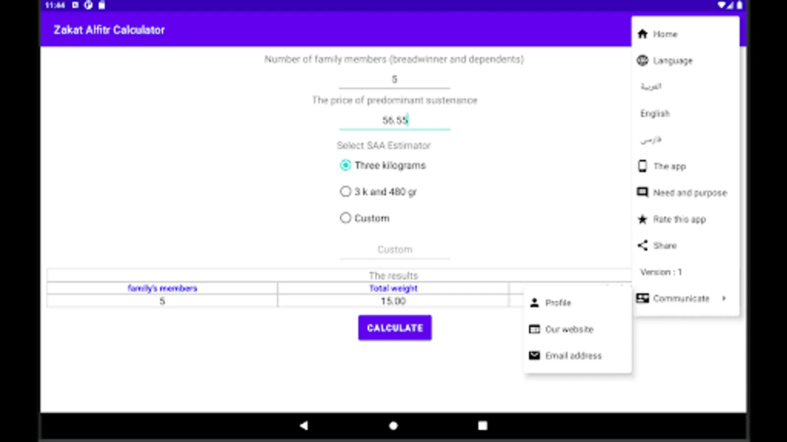 The (Zakat Alfitr Calculator) app is used to calculate Zakat al-Fitr and its method of operation is that,