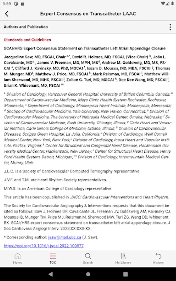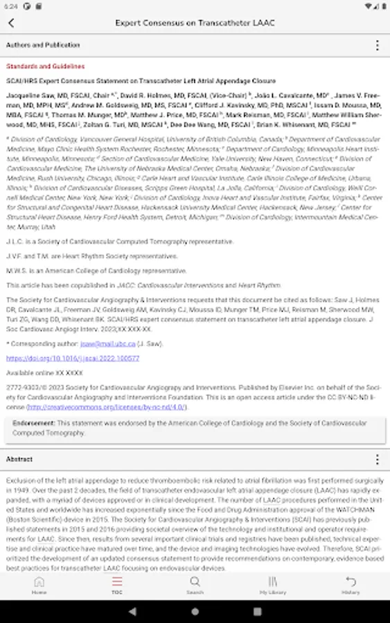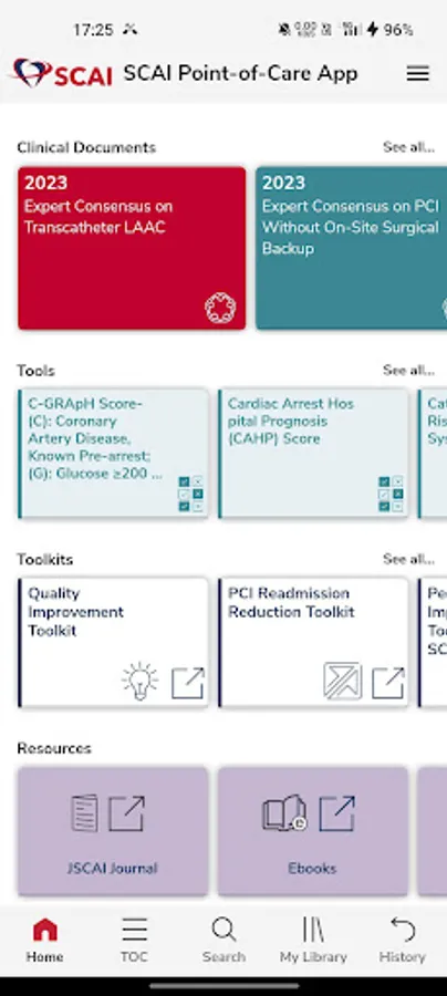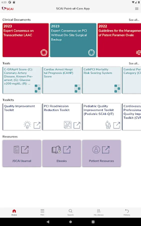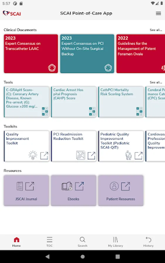 The Society of Cardiovascular Angiography and Interventions (SCAI) Point of Care App is your resource in the Cath lab and in the clinic. Use it for quick and easy reference to SCAI clinical documents and interactive tools such as the SCAI cardiogenic shock classification tool, risk calculators, and key treatment algorithms. The app allows users to bookmark important pages, take notes on key information, and share content with colleagues or patients. SCAI develops clinical documents and quality resources on a variety of topics related to interventional cardiology; the app includes more than 20 of society’s most recent guidance documents. Download it today and begin using these tools to improve your patient care.