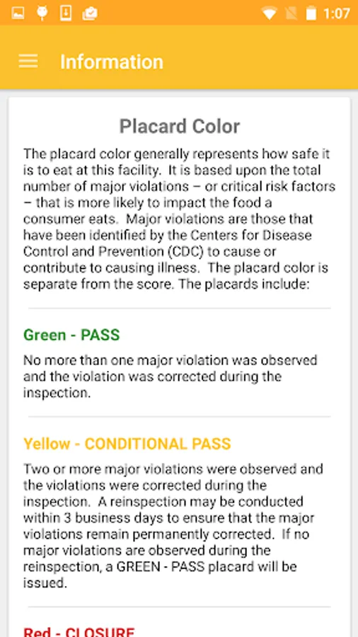 - Easily view closure information for food facilities that are immediately closed due to a major violation.