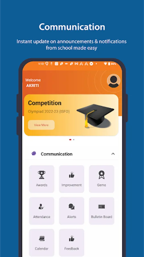 Parent can see all the information about student in real time, can receive the alerts and emergency information about student directly on their mobile . Parent can connect to school using feedback and can send valuable suggestions and inquiries about anything which school will happy to receive and respond.