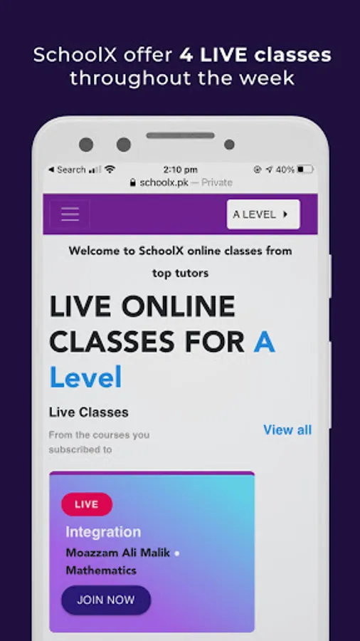 Schoolx is the leading provider of online education in Pakistan. Our platform provides an optimal learning environment for students with personalized guidance from qualified, experienced tutors, all at an affordable price. We offer a wide variety of courses to choose from with flexible schedules for online tutoring and extremely convenient payment periods. We also allow students to try and get to know our website through free trial classes. Join our platform today for an engaging online learning experience and a guaranteed improvement in your grades.