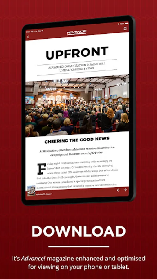 Stay on top of all the news and the stories from Saint Hill with a digital edition of Advance! magazine, enhanced and optimised for viewing on your phone or tablet.