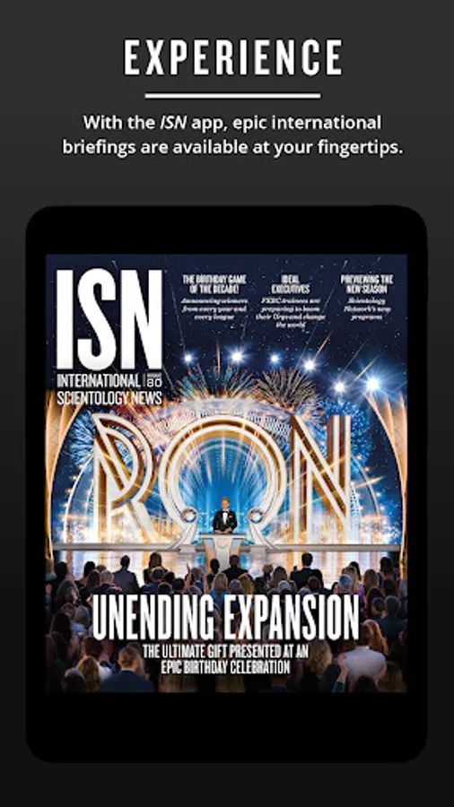 International Scientology News, in digital format. Keeping Scientologists around the world informed on news from the Church of Scientology International, inspired by stories from parishioners around the globe and empowered with measures everyone can take to stay connected to L. Ron Hubbard.