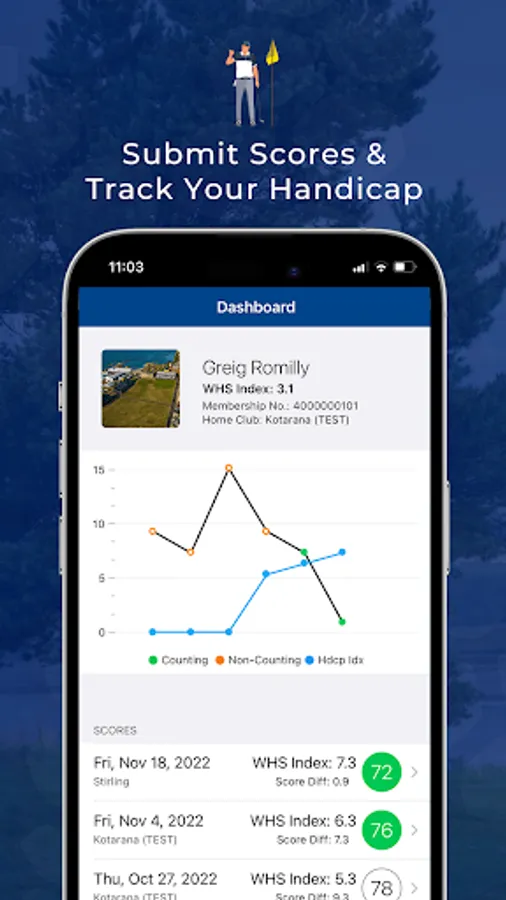 You will experience the same features with the added flexibility of being able to golf your way. Booking tee times at various courses and enter competitions, build their golfing profile and manage your handicap.
