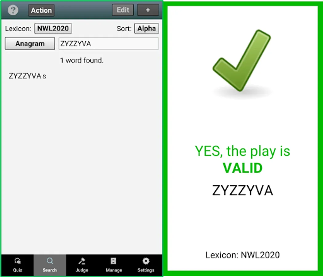 For over 16 years, word game players have used Zyzzyva software to do serious word study. The new mobile version of NASPA Zyzzyva (available for iOS and Android) offers simplified search and quiz functions, including Leitner cardbox study, and can be used for adjudication at clubs and tournaments. Users with multiple devices can use Dropbox to synchronize their quiz data.