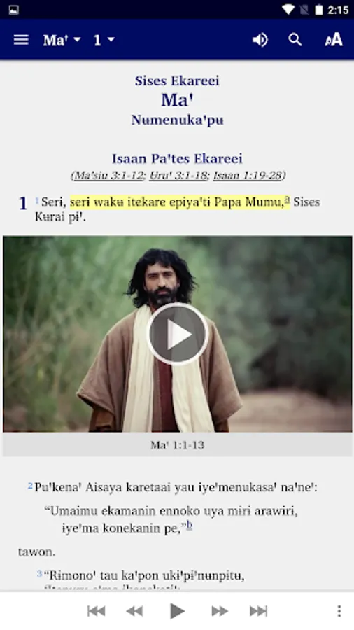 This app comes with audio and automatic text highlighting as the audio is played for books where audio is available. The app will download the audio from the web the first time the chapter is played. After that no further web connection is used or needed.