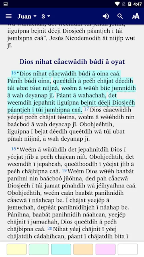This app comes with audio and automatic text highlighting as the audio is played for books where audio is available. The app will download the audio from the web the first time the chapter is played. After that no further web connection is used or needed.