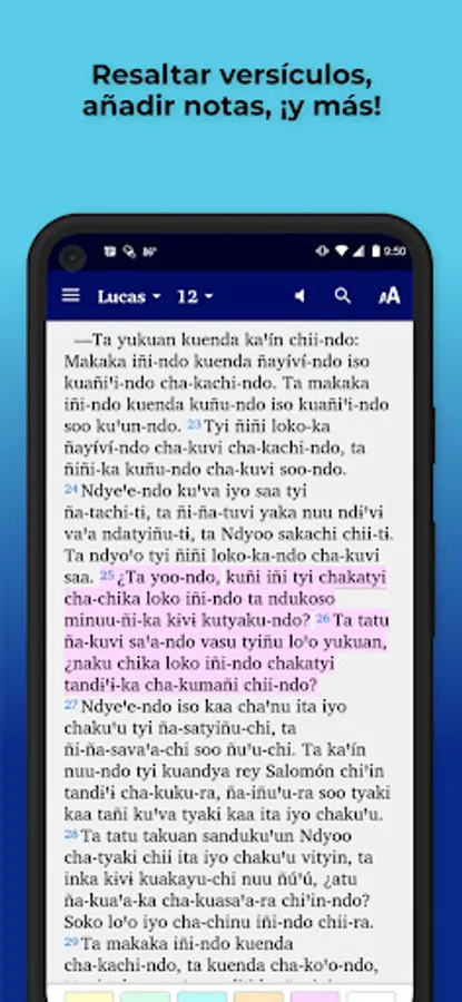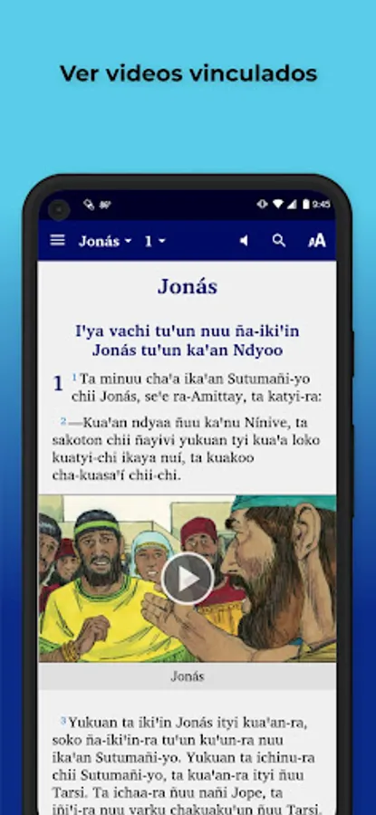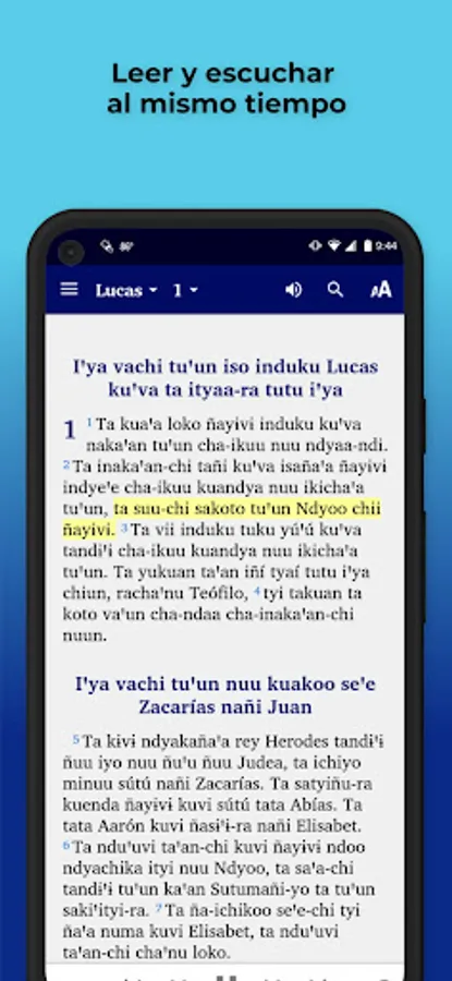 This app comes with audio and automatic text highlighting as the audio is played for books where audio is available. The Gospel of Luke audio is included in the initial installation. The audio for the other books will be downloaded from the web the first time the chapter is played. Internet provider data use charges may apply for downloading audio or watching linked videos.