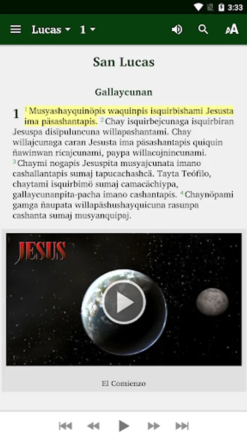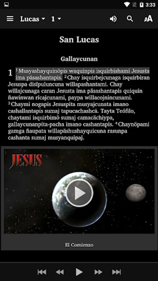 This app comes with audio and automatic text highlighting as the audio is played for books where audio is available. The app will download the audio from the web the first time the chapter is played. After that no further web connection is used or needed.