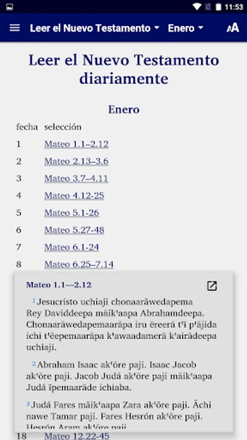 Audio: ℗ 2007 Hosanna, recorded by AGA FDPM Colombia (www.bible.is/SJATBL/Matt/1/D)