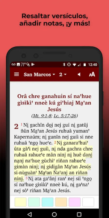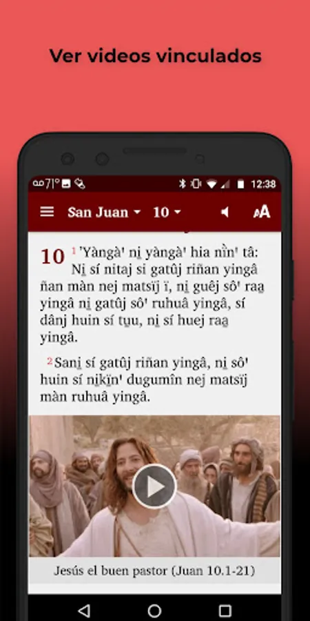 This app comes with audio and automatic text highlighting as the audio is played for books where audio is available. The Gospel of Mark audio is included in the intial installation. The audio for the other books will be downloaded from the web the first time the chapter is played. Internet provider data use charges may apply for downloading audio or watching linked videos.