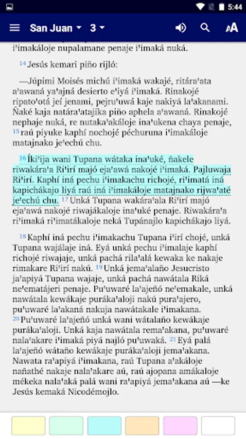 This app comes with audio and automatic text highlighting as the audio is played for books where audio is available. The app will download the audio from the web the first time the chapter is played. After that no further web connection is used or needed.