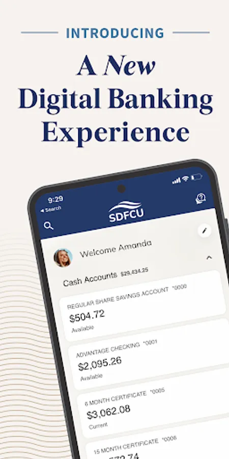 New member 07/25, my experiences have been very good, products offered by SDFCU met my needs,App is easy to navigate after learning usage. Thanks SDFCU .