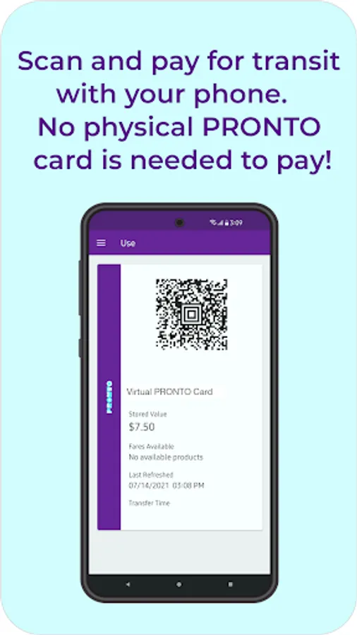 With PRONTO, you can pay-as-you-go* by adding money to your PRONTO account with a credit or debit card. Every time you scan your app, the appropriate one-way fare is deducted from your balance. Look for validators at Trolley, SPRINTER and COASTER stations, and onboard buses.