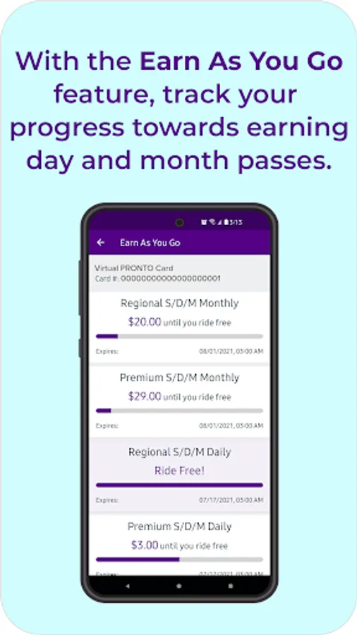 You can track your progress toward a Day or Month Pass in the PRONTO app.