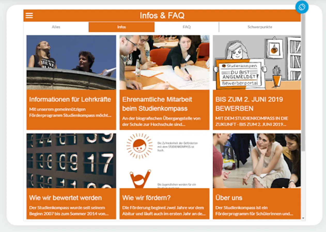 In addition, the study compass app also provides information for parents, teachers and numerous offers for volunteer mentors. Some areas of the app are reserved for registered user groups.