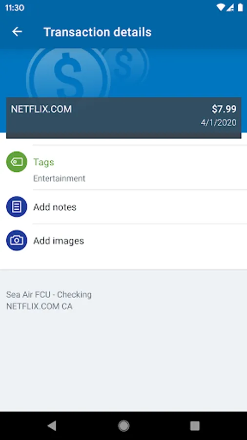 -Keep your transactions organized by allowing you to add tags, notes and photos of receipts and checks.