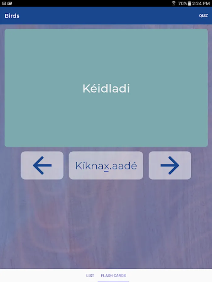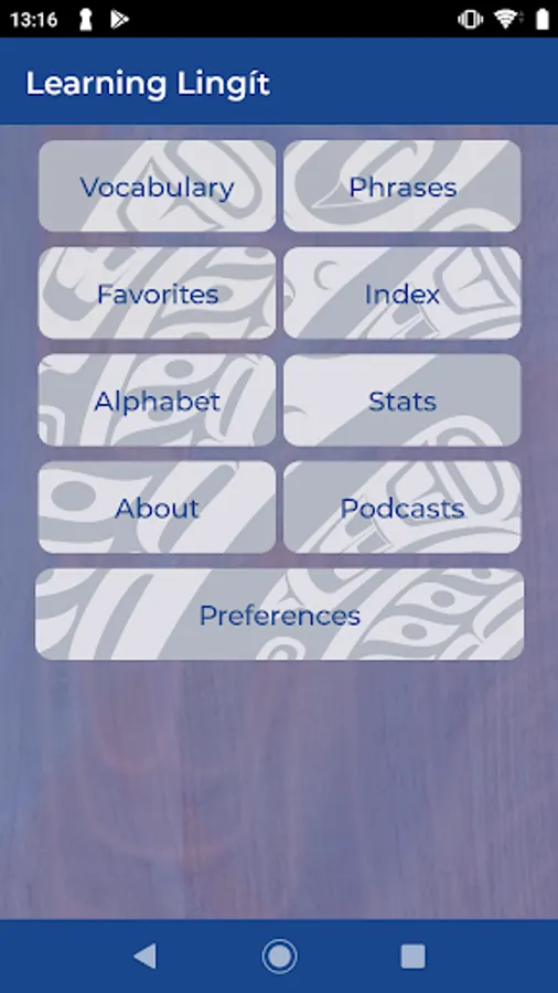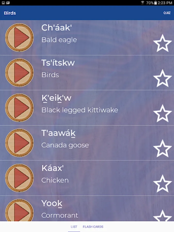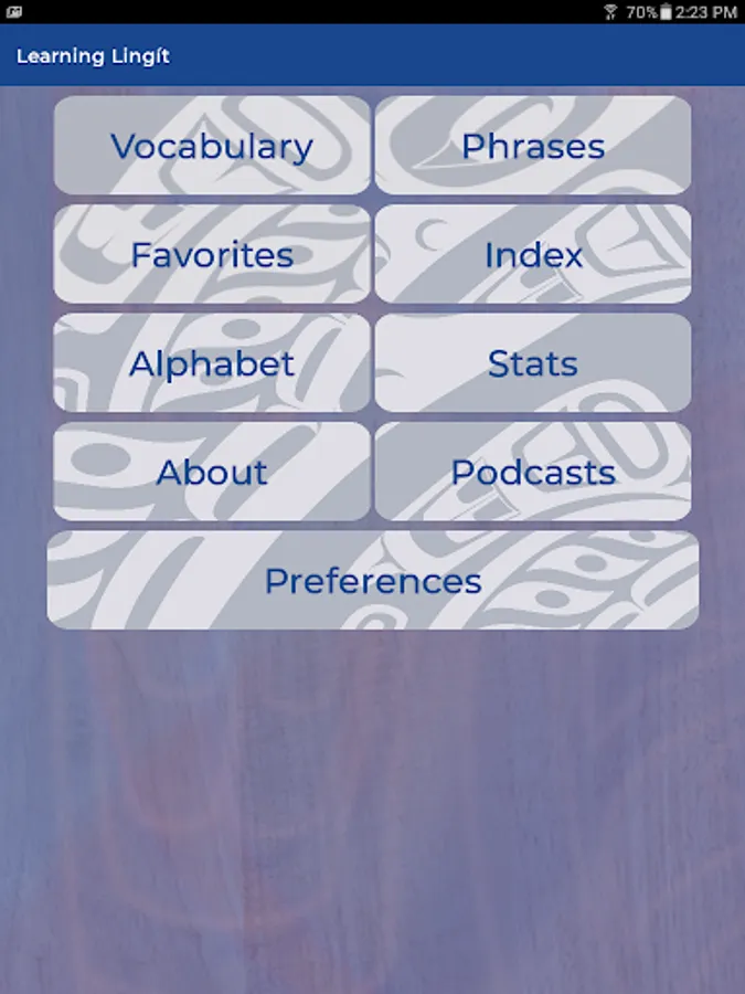 The app is designed as an introduction to the Tlingit language and is a supplementary tool for teachers and learners. Audio for the vocabulary and phrases is provided by a variety of fluent speakers.