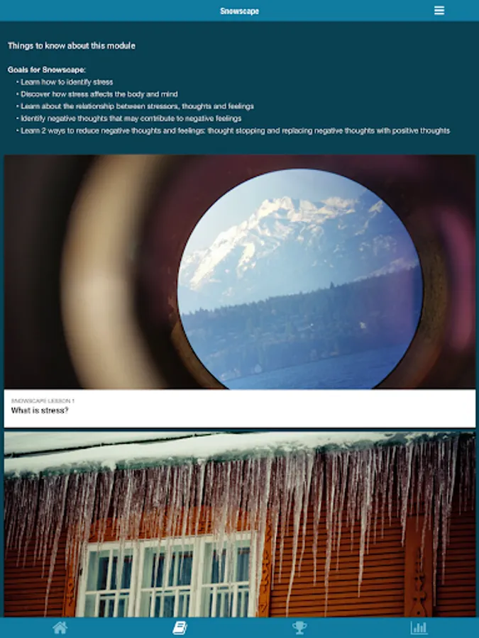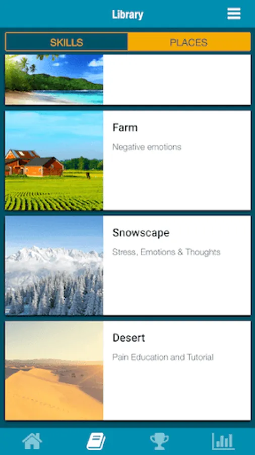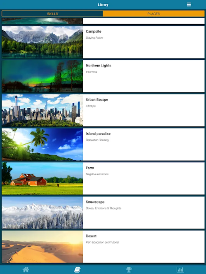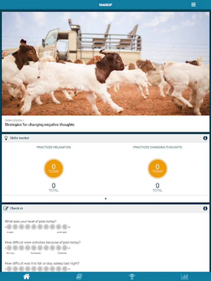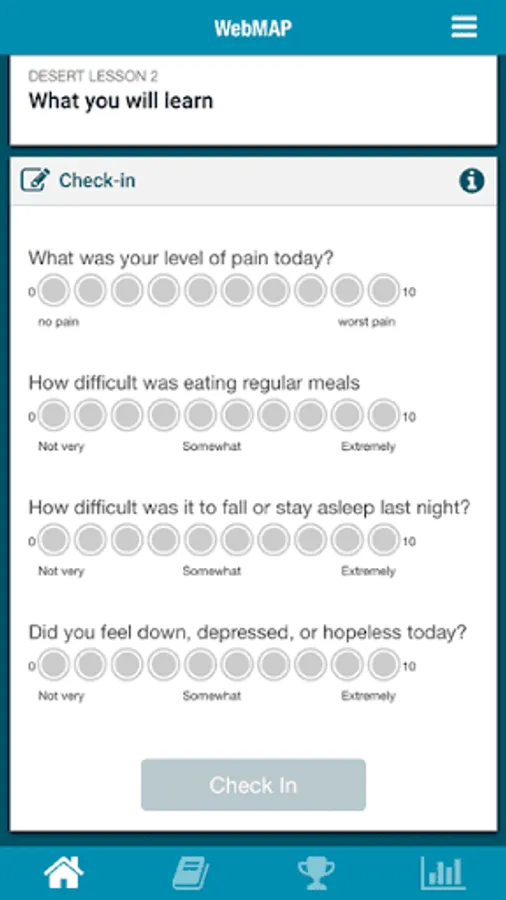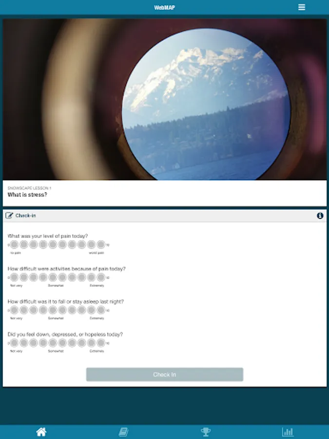 In this program, you will learn different behavioral and cognitive skills for managing pain and for doing more activities that you want to do. You are going to be traveling through awesome destinations during the program. It takes about 6 weeks or so to go through all of the destinations; however, you can use this app and the skills recommended for as long as you need to. Each of the places that you visit will teach different skills to help you manage your pain. You will also keep track of your symptoms and progress, and complete assignments to help you practice new skills. You will work on each assignment for a few days before you move onto the next place.