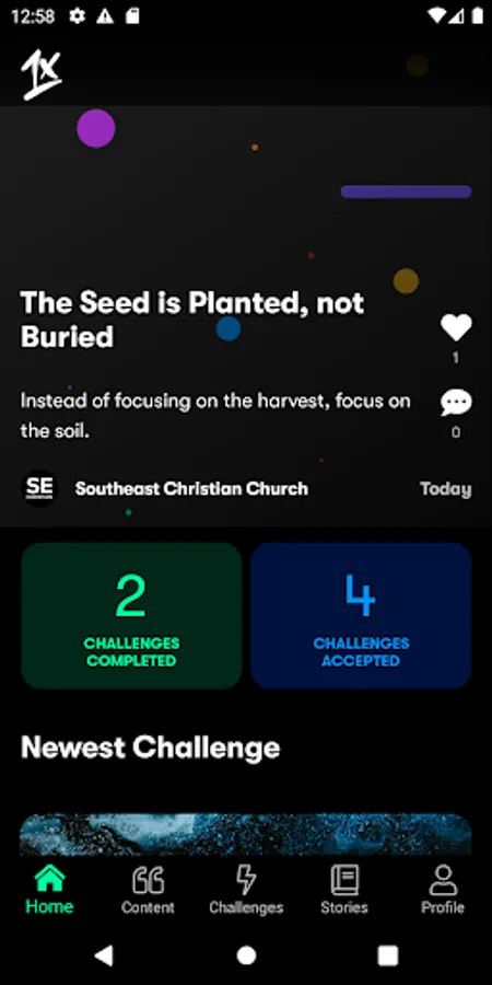 The One at a Time app helps bring the weekly sermon to life in daily devotionals, each designed to help you live out the teaching one relationship at a time. Accept the weekly challenges to help bring faith to life and share stories of how 1X living is impacting your life.