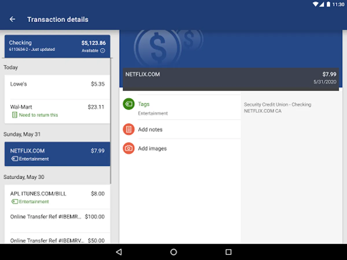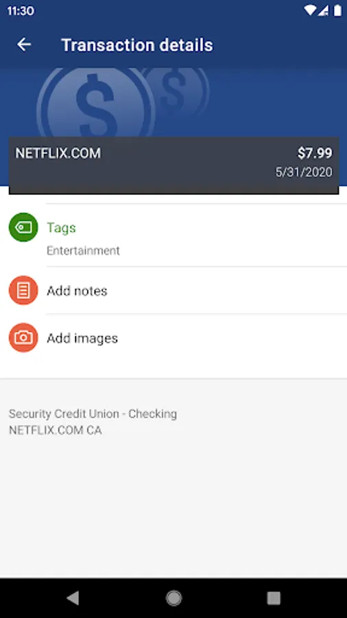 -Keep your transactions organized by allowing you to add tags, notes and photos of receipts and checks.
