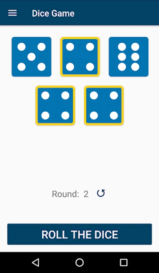 Privacy Friendly Dice Game displays five dice that can be rolled by a button. Particular dice can be saved for the next round by pressing. A round counter helps supports the game. After three rounds the final result is displayed. Players can defines own rules to collect points like collecting pairs, three of a kind, four of a kind or a full house.