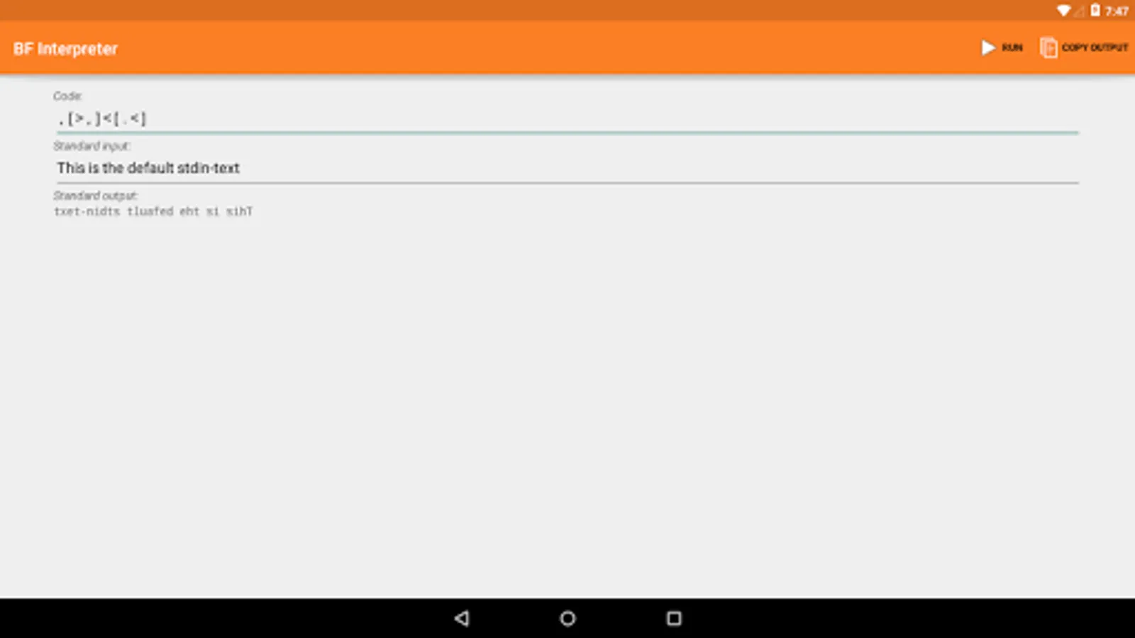 BF Interpreter is a program interpreter for the Brainfuck programming language.