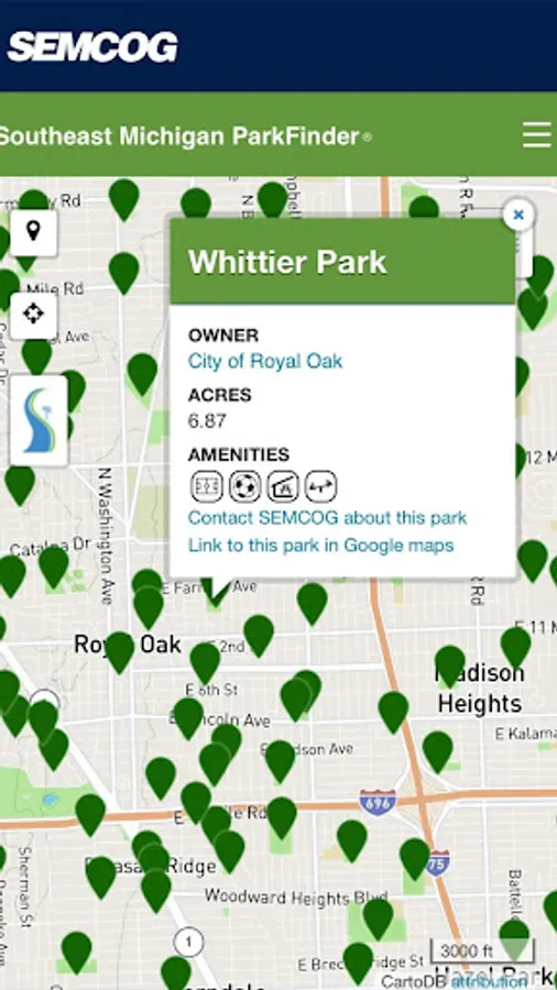 Every reasonable effort has been made to assure the accuracy of this data. However portions of the inventory may be incomplete or incorrect. Please use the links provided to contact SEMCOG with more information about a specific park.