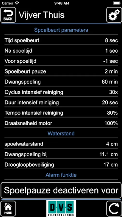 Using the DVS Control app you are able to remotely view how your system is performing. For example, check when the unit was last cleaned. You may also adjust the settings of the control unit, such as the duration or cleaning intervals.