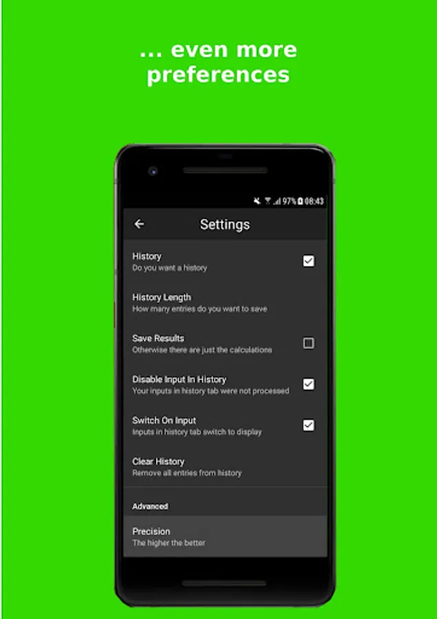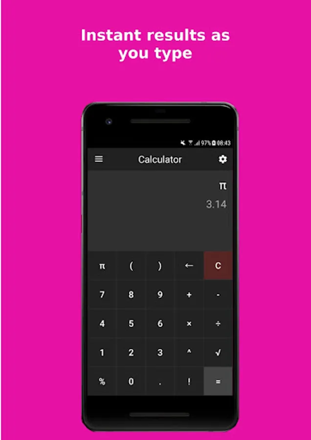 Calculator provides mathematical functions for basic and advanced calculations.