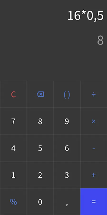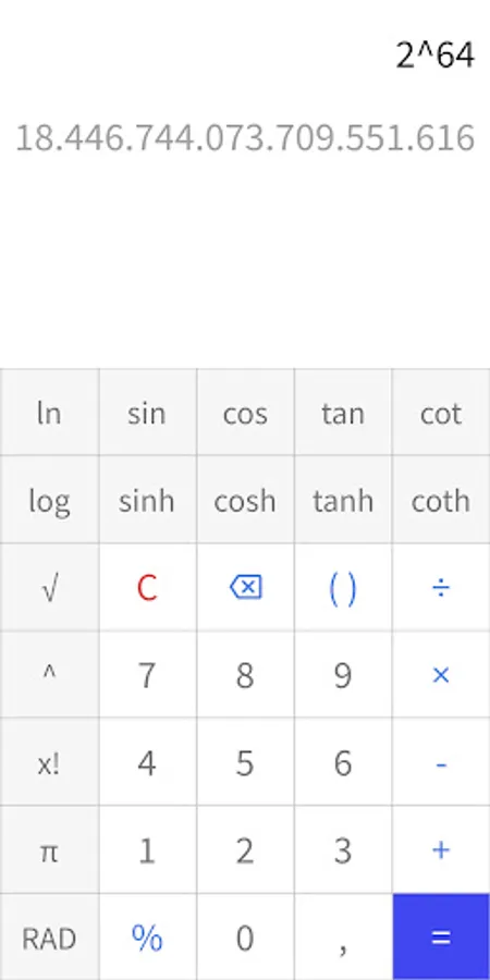 In addition to the basic arithmetic operations, the calculator also offers scientific functions for calculation.