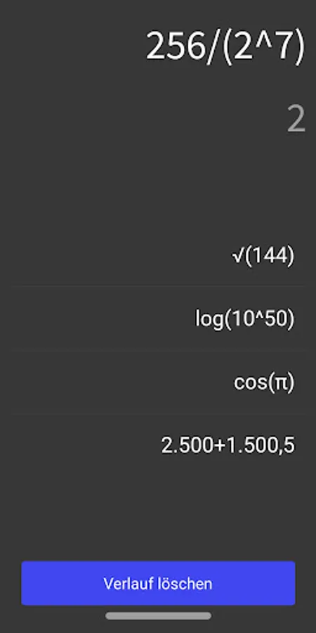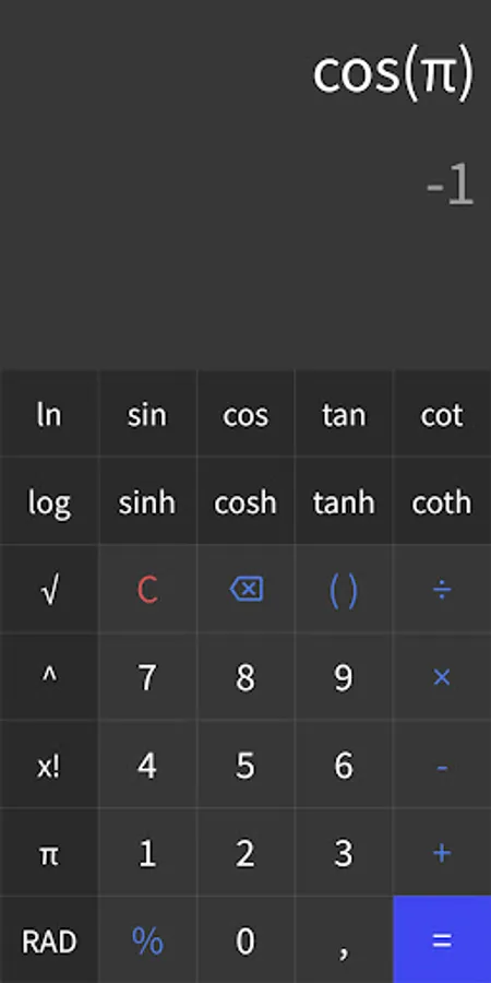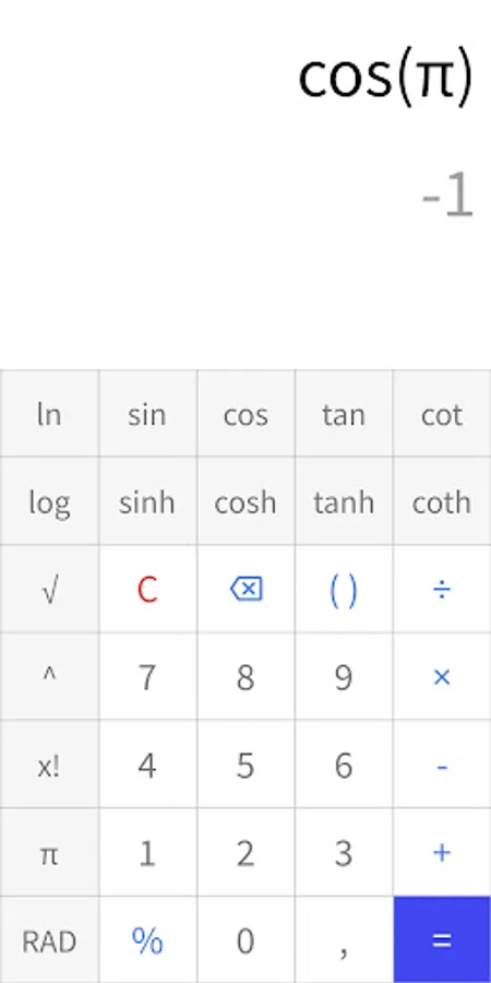 Various gestures can be used to use the advanced functions of the calculator. These include the course and the scientific functions such as sine, cosine and tangent, as well as their inverse.