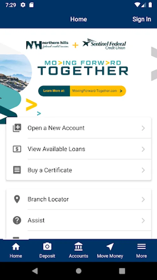 Our new mobile app provides members convenient access to Sentinel Federal Credit Union's mobile website, mobile check deposit, mobile banking, branch & contact information, and help.
