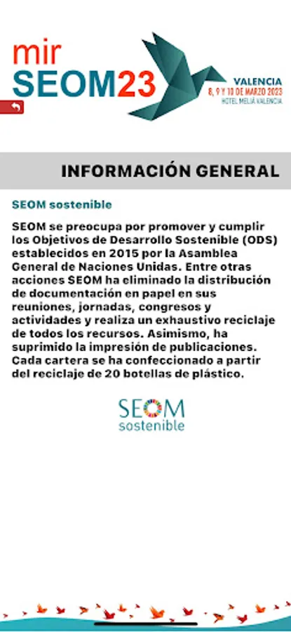 The Spanish Society of Medical Oncology (SEOM) has developed this application on the occasion of the Resident Courses that it organizes annually. In it, the App user has all the information of the event: Committees, Program, a Conference Planning Agenda, Course Venue, information from the course in real time, Frequently Asked Questions, in direct link to Become a SEOM Partner , as well as the way to contact the person in charge of the event.