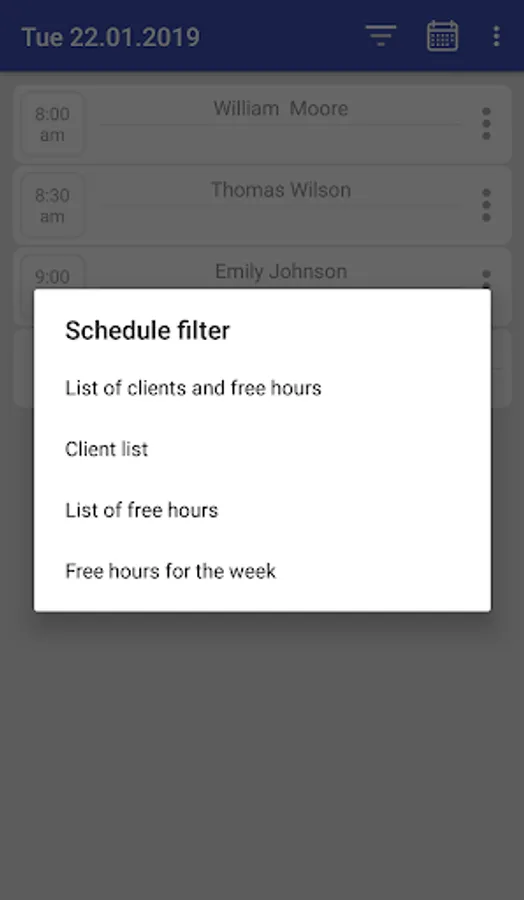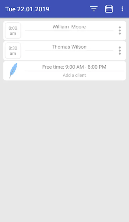 The application allows the hairdresser to conveniently plan his schedule, and also maintain a client database, form your list of services, which allows you to individually select services for each client individually. In the application, you can enter the amount of payment for the selected services, view the payment history selecting a certain period of time and view the list of debts.