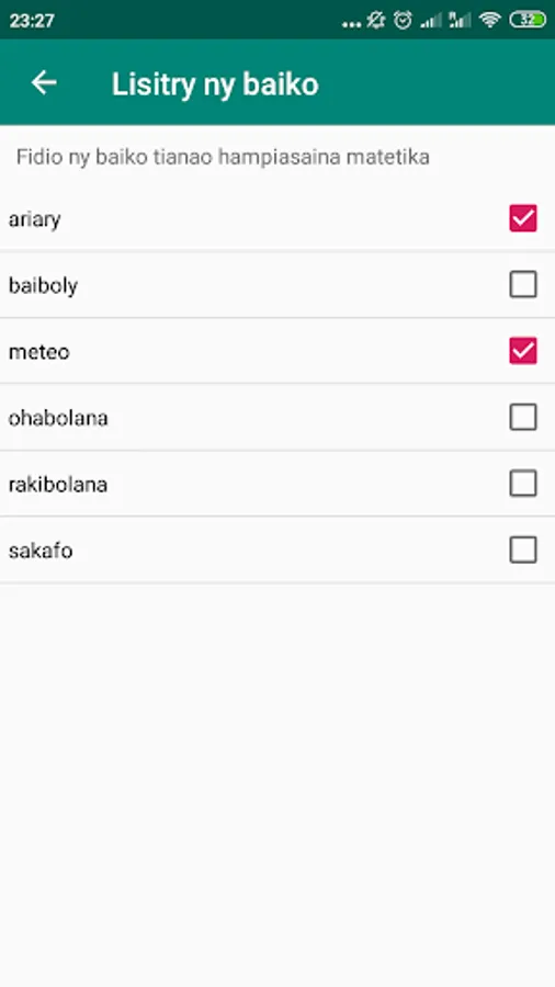 Weather, Proverbs (ohabolana), rakibolana (dictionary), conversion to ariary, etc.