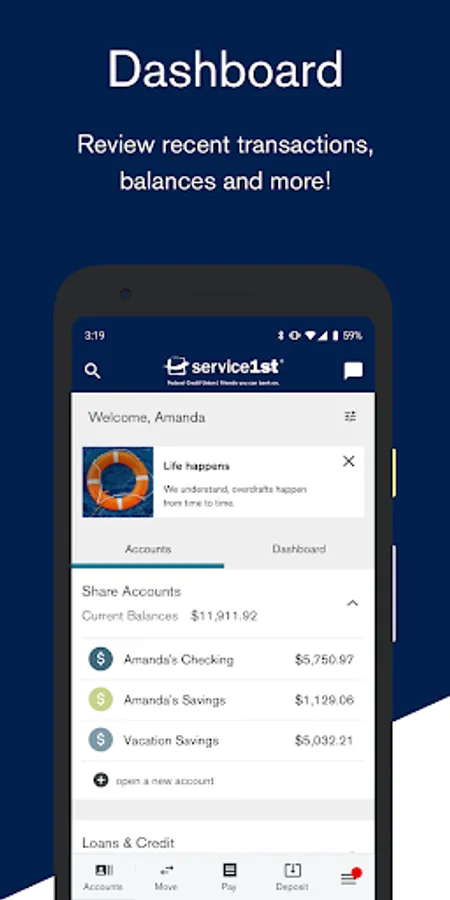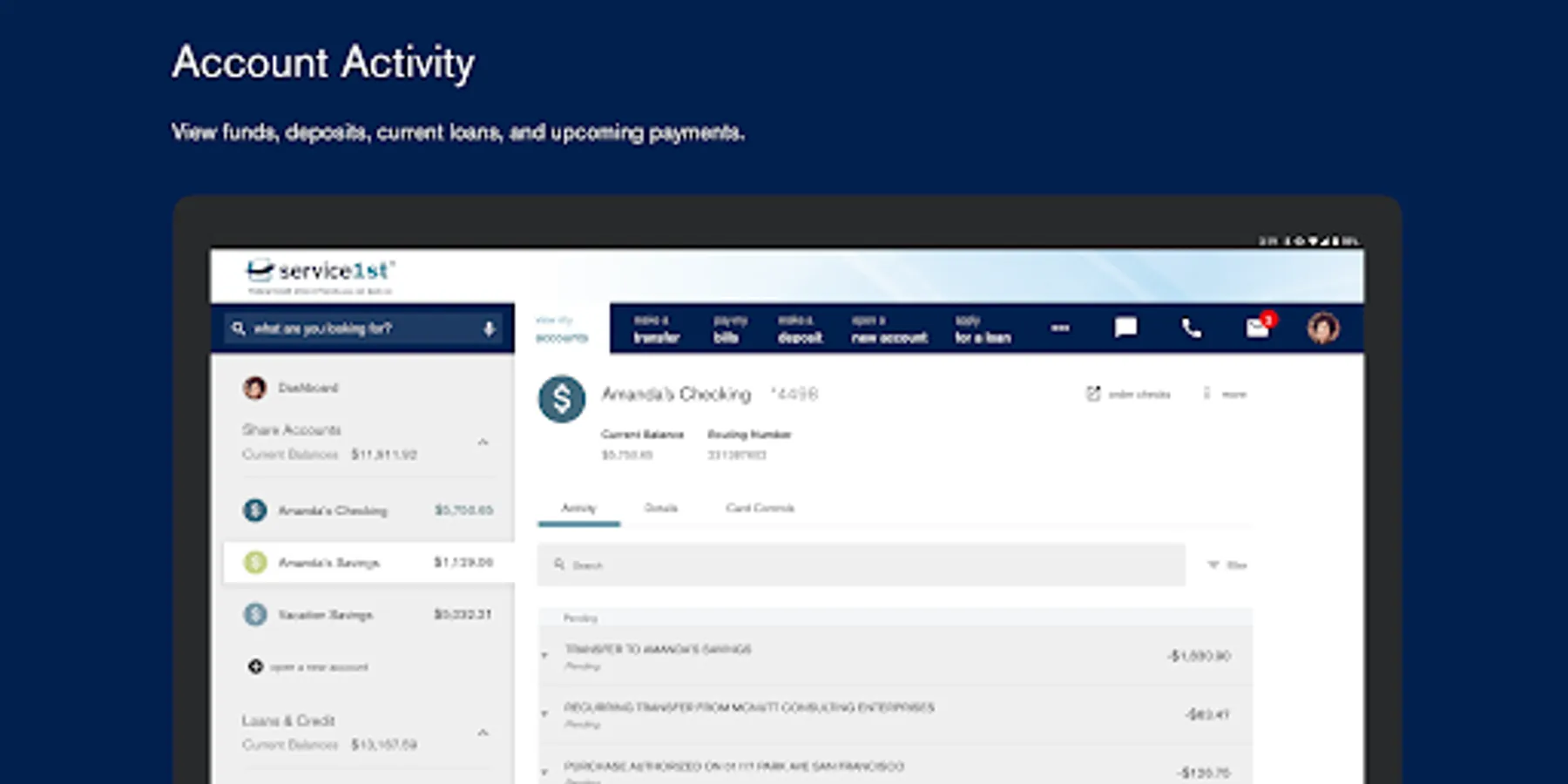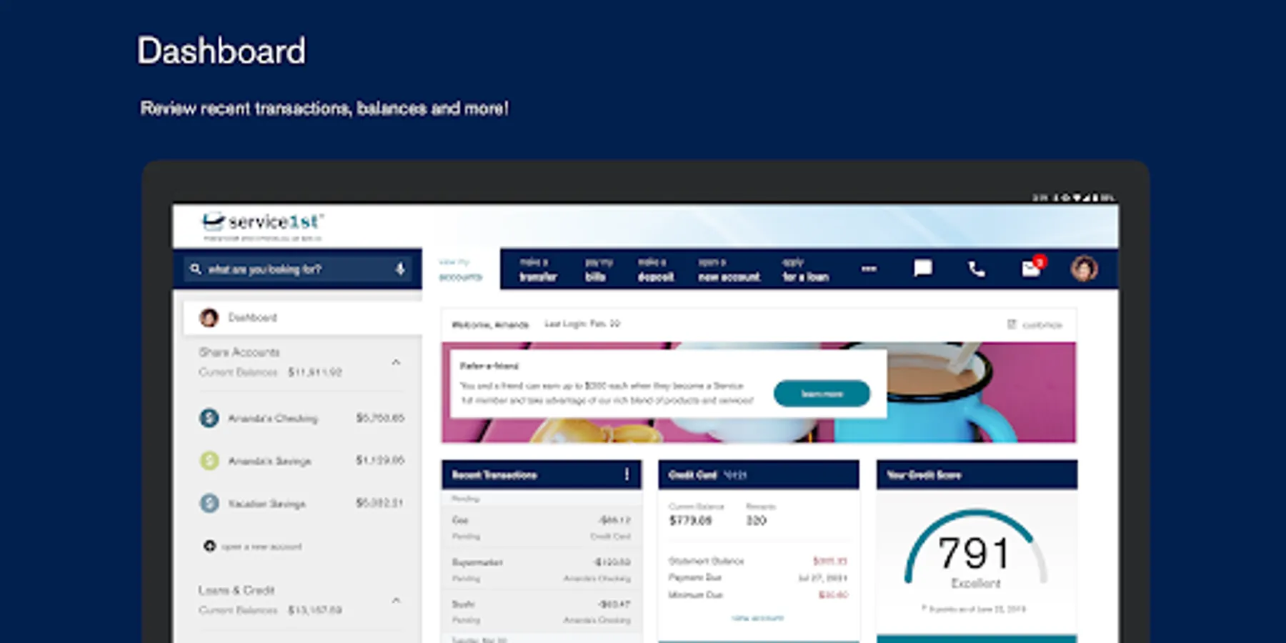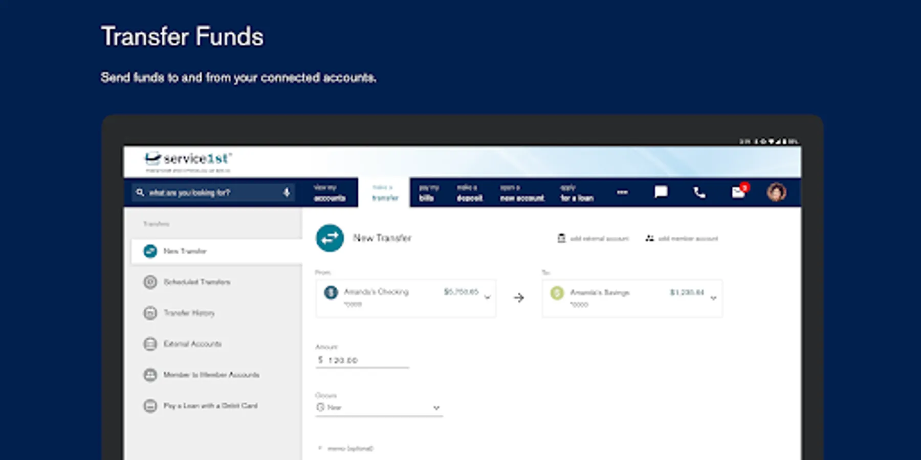 At Service 1st Federal Credit Union, our promise to our members is to provide a lifetime of financial services to meet your changing needs. Service 1st Mobile provides you a convenient and secure way to manage your accounts, view cleared checks, make deposits, pay bills and view your transaction history. Plus, you can complete quick transfers within Service 1st accounts, apply for loans and find the closest ATM within the Service 1st network from just about anywhere!