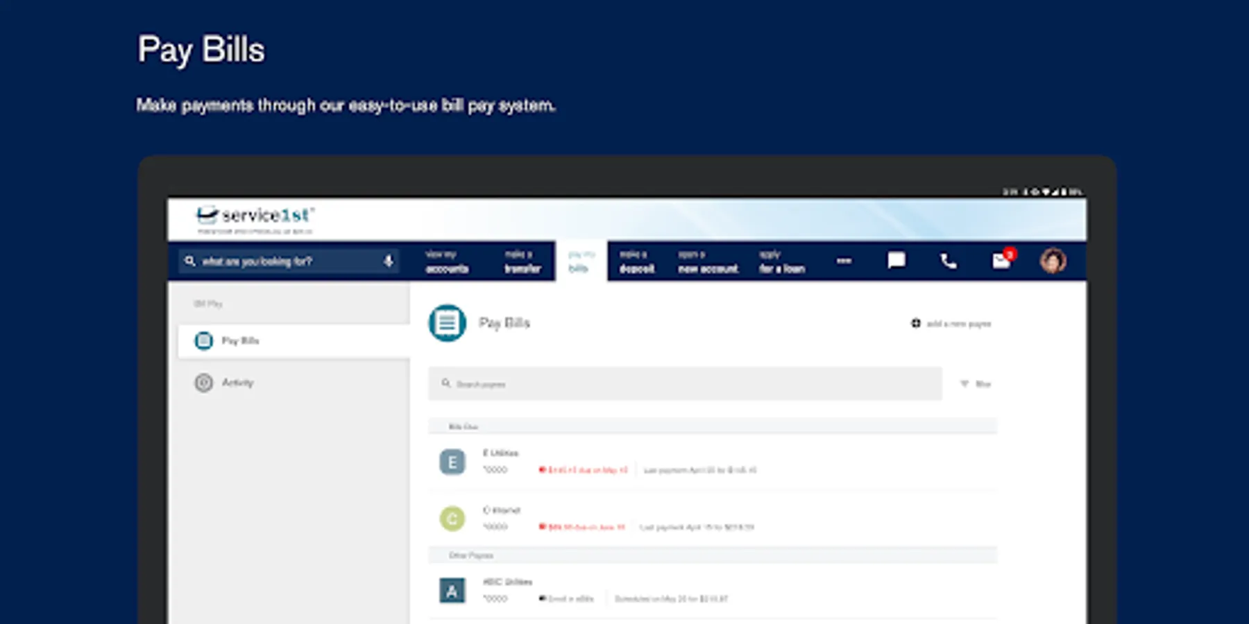Never forget to pay a bill again! Use Bill Pay to schedule your payments.
