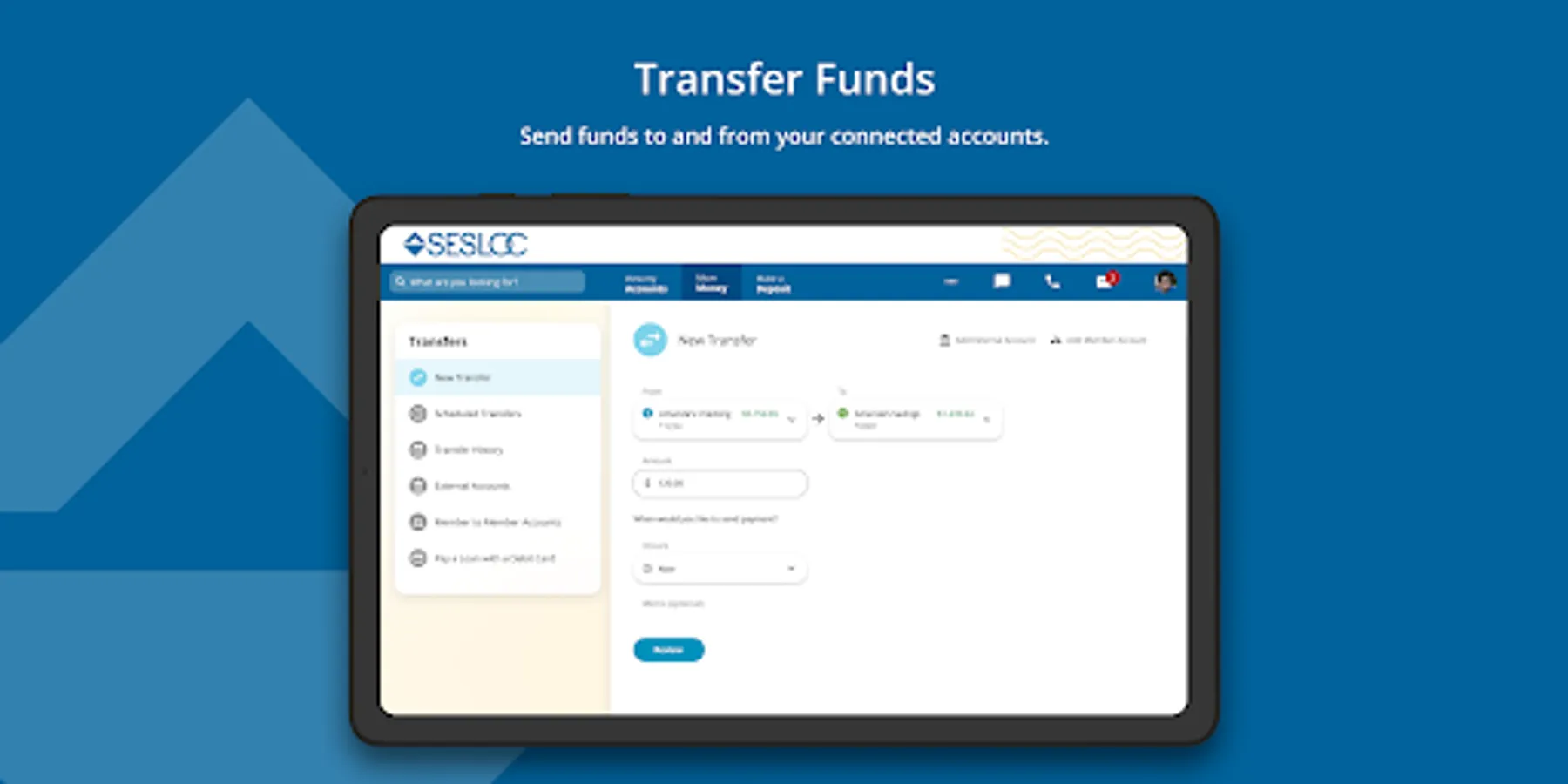 Transfer funds between your SESLOC accounts, or transfer to another financial institution.