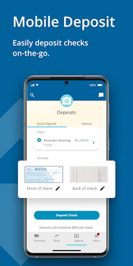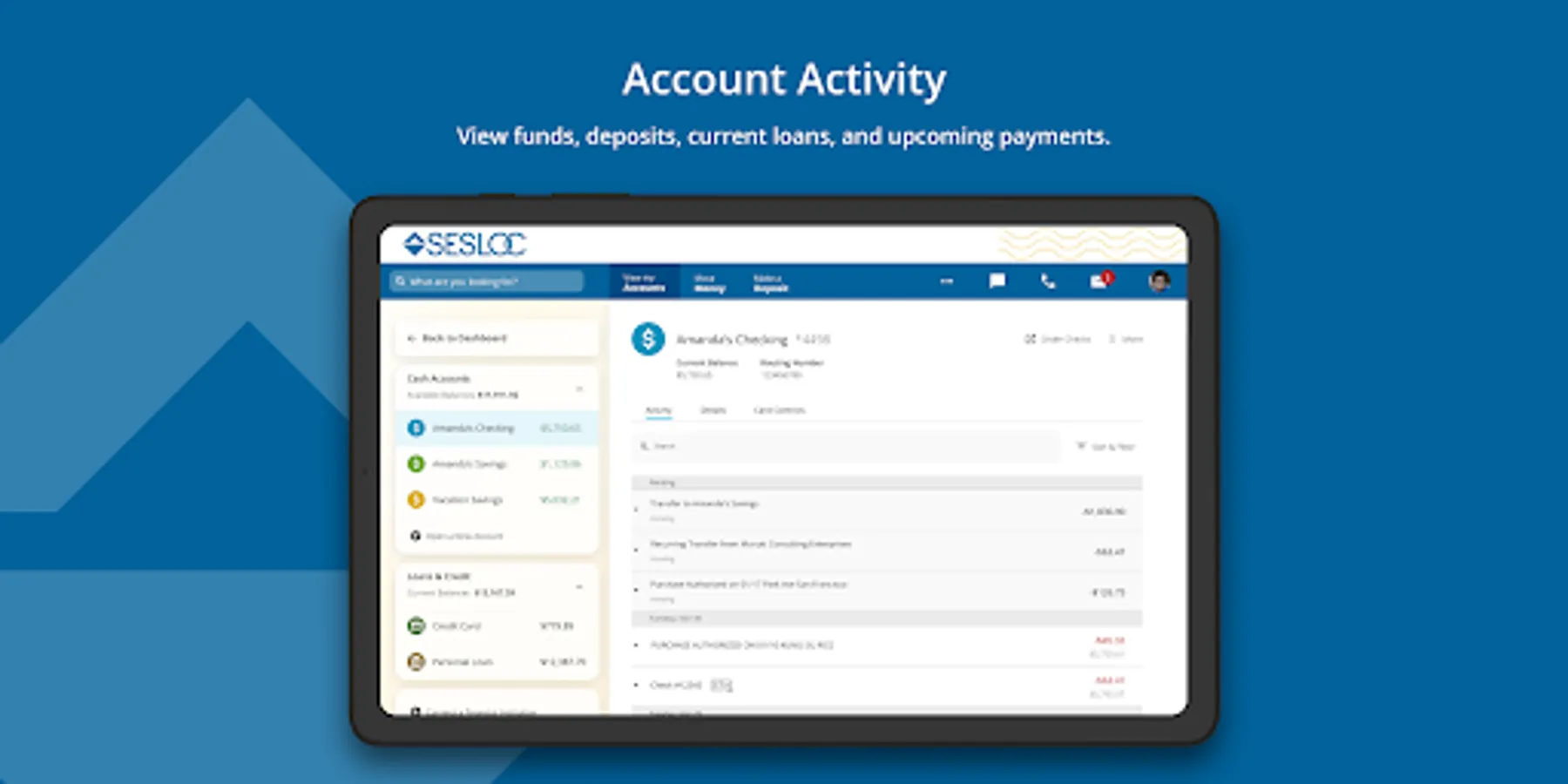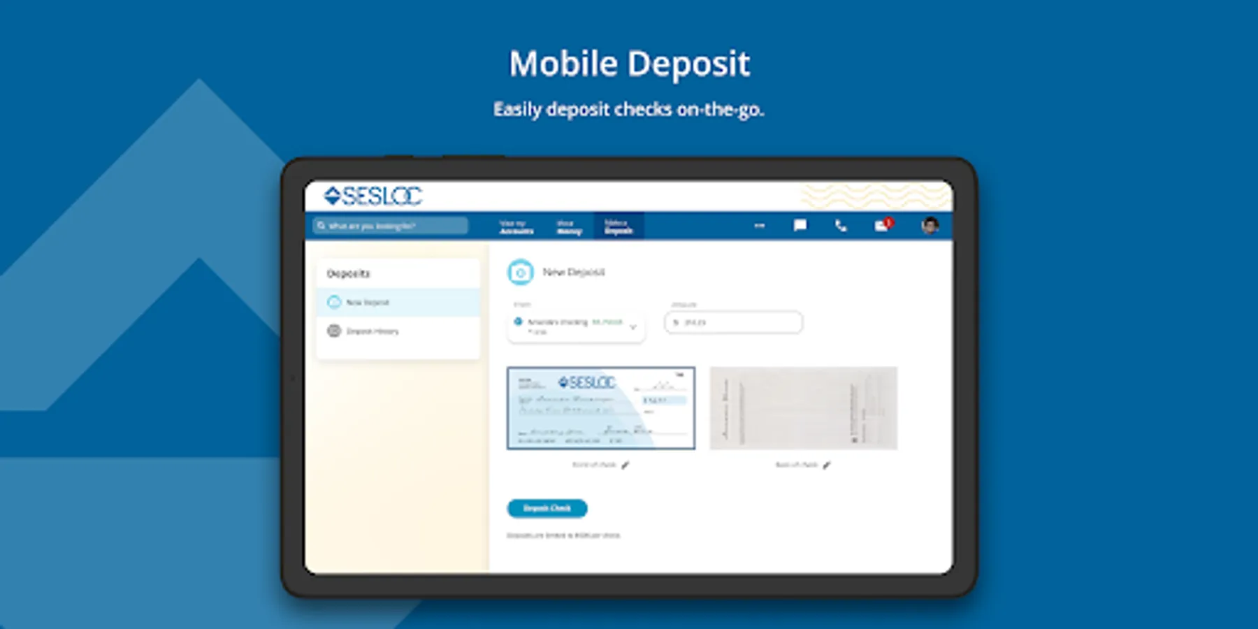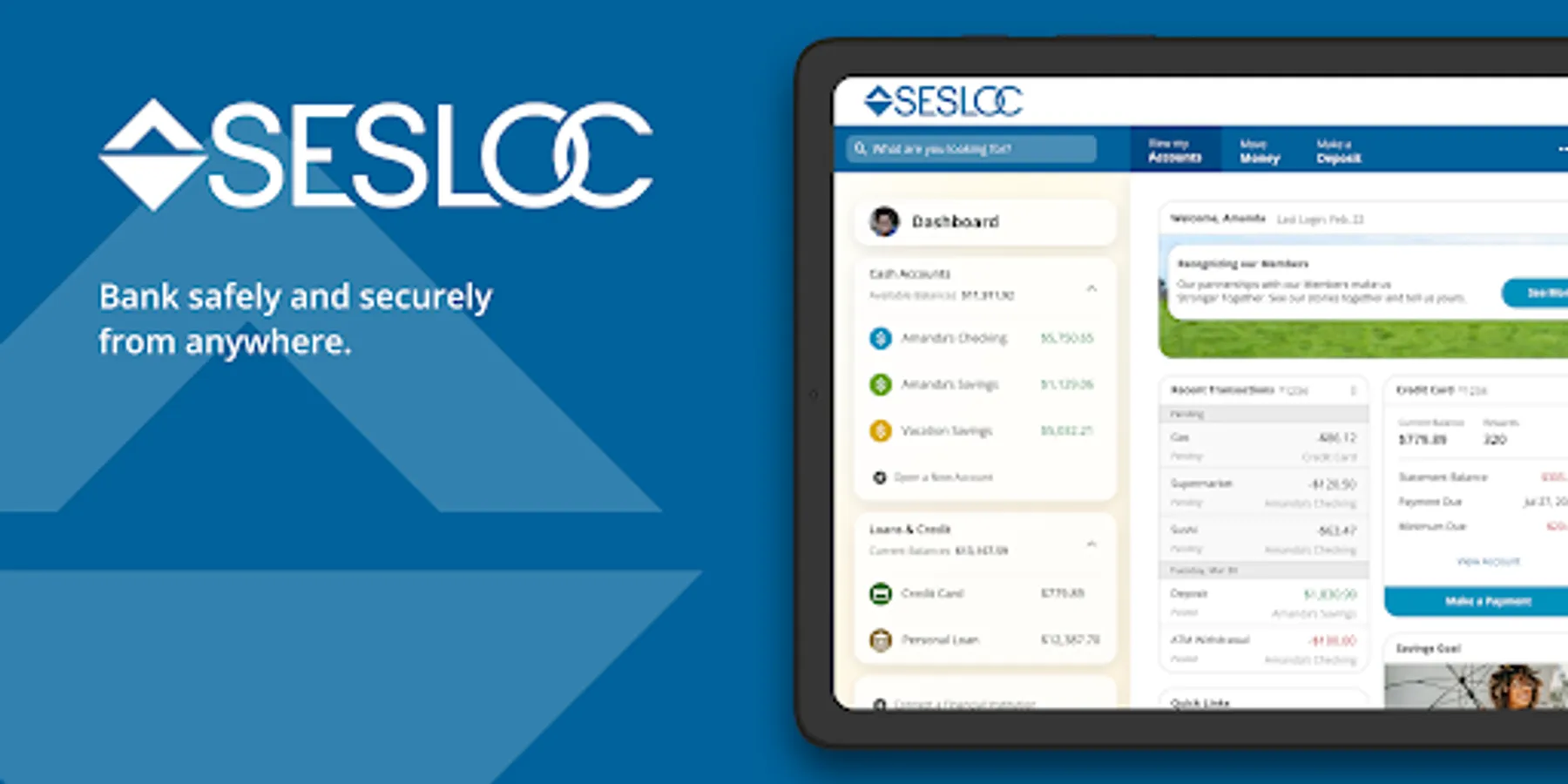 Manage your SESLOC accounts securely and conveniently from anywhere, using the SESLOC Mobile App. Whether you want to check your account balance, view your account info, or deposit a check, you can do it all from your mobile device. Features include: