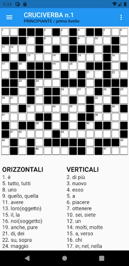 The categories are in turn divided into levels and each level contains at least 10 crosswords, for a total of 265 crosswords.