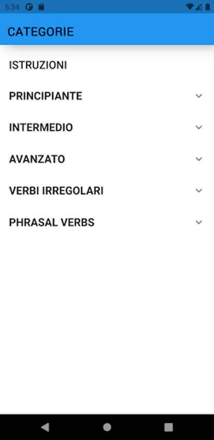 The app contains three categories: BEGINNER, INTERMEDIATE and ADVANCED.