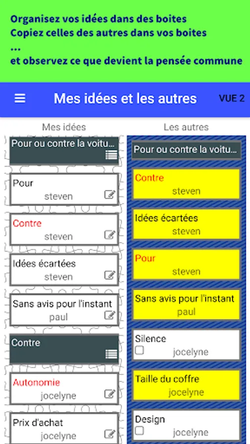 Collectively construct a mindmap of his ideas by sharing his ideas, capturing those of other members.