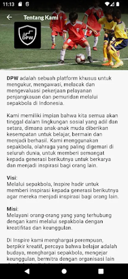 Melalui sepakbola, Kami hadir ntuk memberi inspirasi kepada generasi berikutnya agar mereka menjadi inspirasi bagi orang lain.
