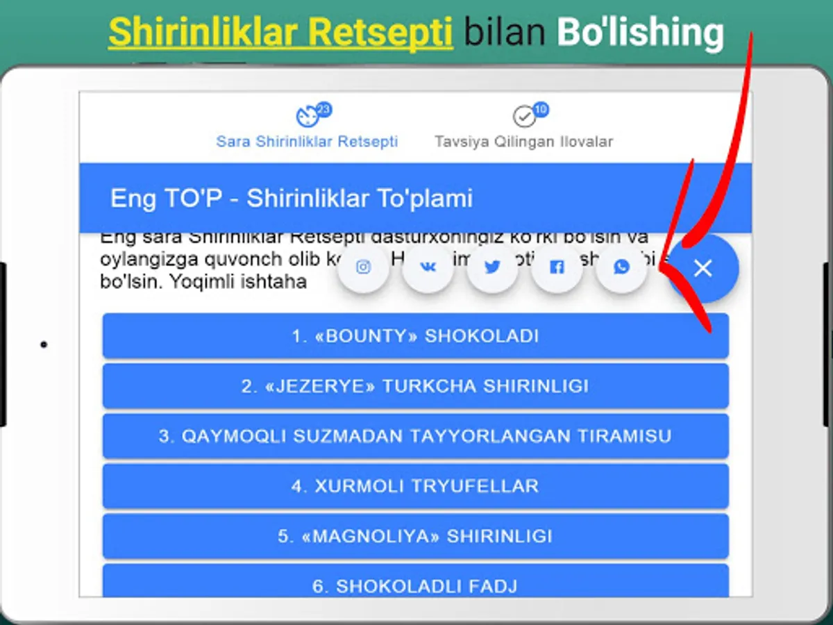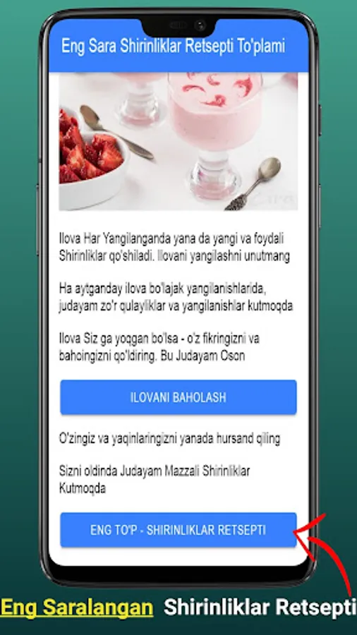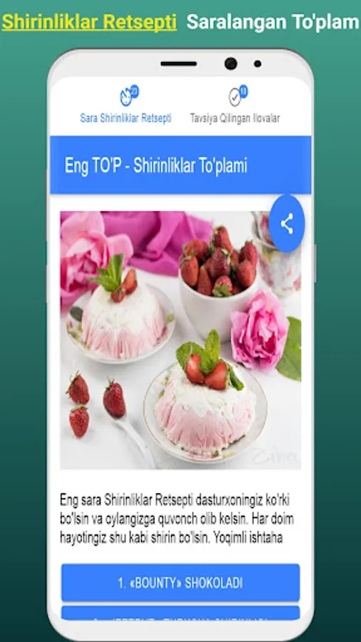 Ilova Har Yangilanganda - Yangi va Mazzali Shirinliklar Retsepti qo'shiladi. Ilova ni Yangilab Turishni Unutmang