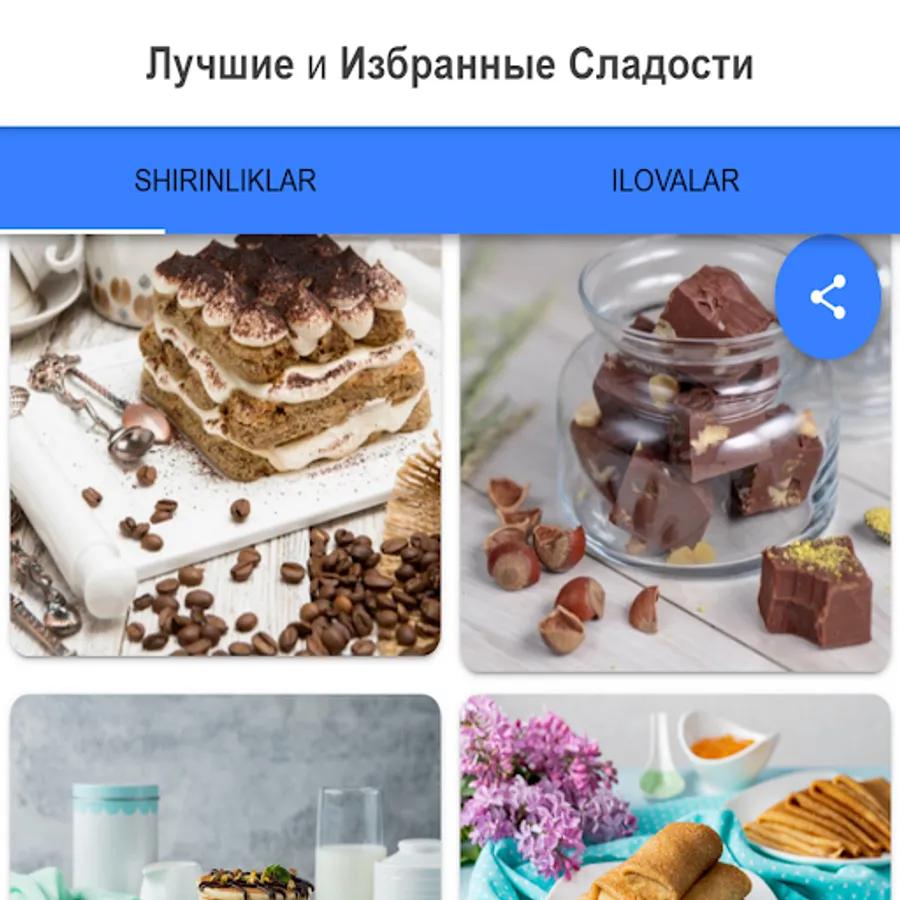 Ilovada Siz Mazzali va Tez Tayyorlanadigan Shirinliklar Retseptini Topshingiz Mumkin.