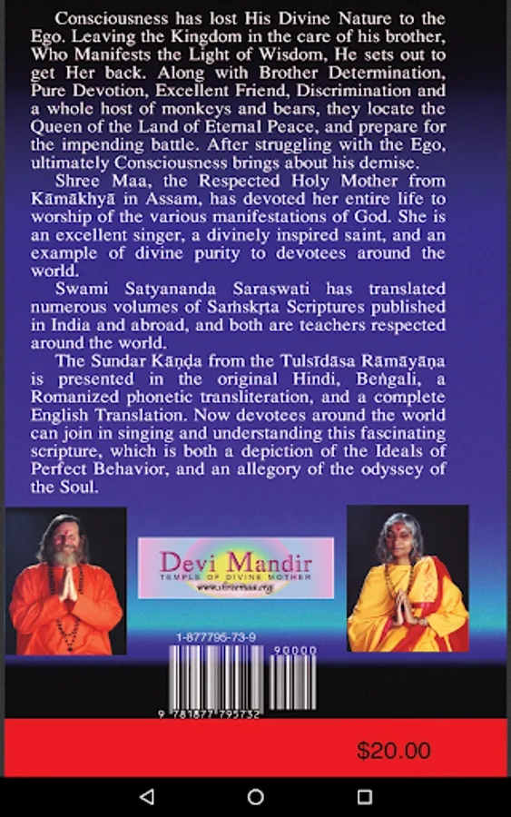 Roman and Bengali transliterations have been included along with the original Hindi and English translation. Now Devotees around the world can join in singing and understanding this fascinating scripture, which is both a depiction of the ideals of perfect behavior and an allegory of the odyssey of the Soul.